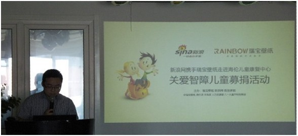 本次活动由新浪家居倡导发起,得到众多网友的积极响应。瑞宝总部的同事,5月30日组织了爱心捐赠。6月1日,瑞宝壁纸和热心网友代表,带着关爱,走进海伦康复中心。讲故事、做游戏,同孩子们同过六一。这一刻,他们仿佛远离困扰,从内心洋溢的快乐,天真无邪,甜美而灿烂,享受这个原本就属于他们的节日。